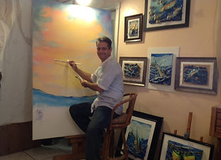 All of my work is on canvas with mixed media, my interest leans toward the marine life and the ocean world. This has captured my interest while it created the challenge to paint the scenery, background, and the subject while maintaining the integrity of the foreground.